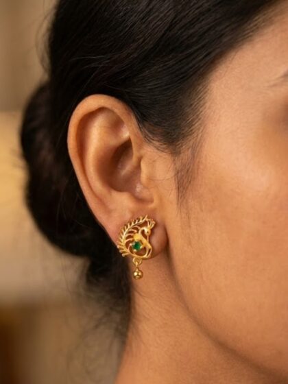 Emerald Green Peacock Stud Earrings – Gold Replica Lightweight Jhumki Design