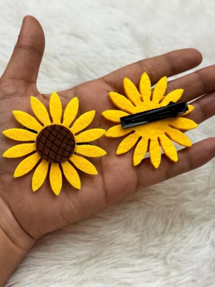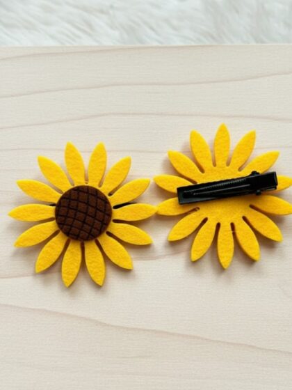 Cute Felt Flower Hair Accessories | Handmade Kids Hair Clips | Yellow Sunflower Barrettes for Toddlers & Kids