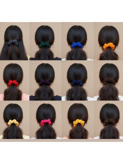 Premium Multicolor Hair Scrunchies – Soft Fabric Elastic Bands (Set of 12) | Only Rs 60 Short Description