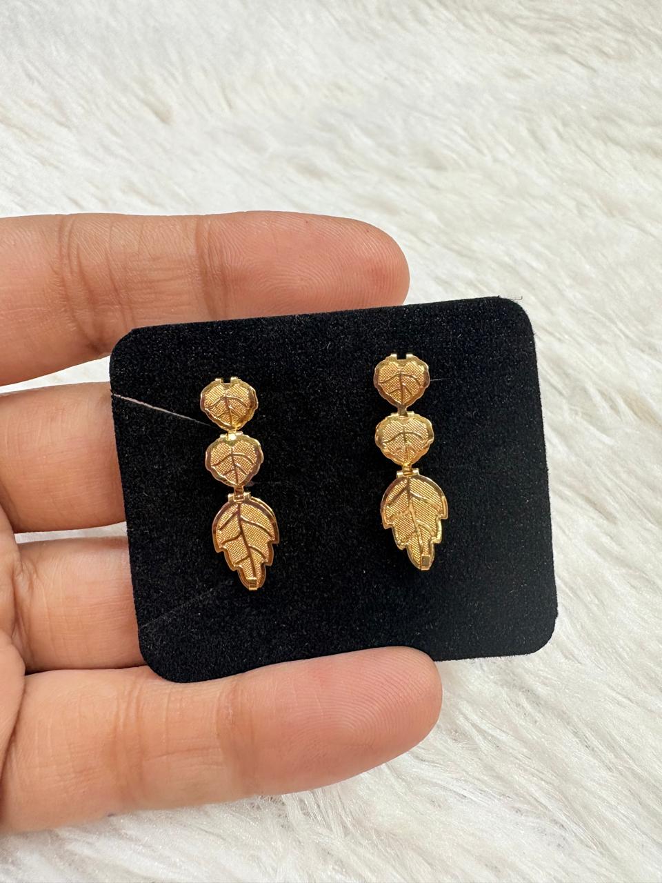 Elegant microplated earrings featuring a stylish triple-leaf design. Lightweight and perfect for party and festive wear. Code: DBH2.